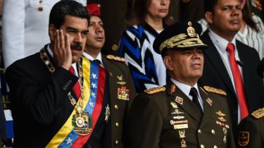 Derechos de autor de la imagenEPAImage captionEl ministro de Defensa, Vladimir Padrino, mostró su respaldo al presidente.